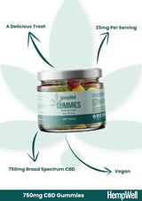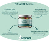 HempWell CBD Gummies 750mg | 30 Pieces – Your Delicious Route to Wellness