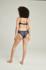 Introducing the Sheer Deco High Leg Brief in Navy by Nudea - the epitome of elegance and sustainability fused into one exquisite garment.