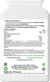 But that's not all - our formula also includes kelp, which is rich in iodine and supports healthy thyroid function, essential for maintaining a healthy metabolism. Cinnamon helps to regulate blood sugar levels and reduce cravings, while cayenne helps to increase thermogenesis, or calorie burning. And with chromium picolinate, which supports normal blood sugar levels, you can be sure you're getting a comprehensive approach to healthy weight management.