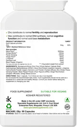Introducing Maca Complex Plus - the ultimate supplement for men's sexual health and overall well-being. Our specially formulated blend contains powerful ingredients such as maca root, ginkgo biloba, panax ginseng, L-arginine, damiana leaf, organic black pepper, and zinc to provide a comprehensive solution for men's sexual health.