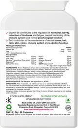 Vitamin B6 and zinc in MENOstage contribute to several bodily functions, including the regulation of hormonal activity, immune system function, reduction of tiredness and fatigue, cognitive function, and normal vision. Zinc also helps to maintain normal bones, hair, nails, and skin, as well as testosterone levels in the blood, and has a role in the process of cell division.