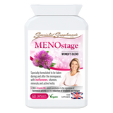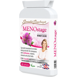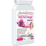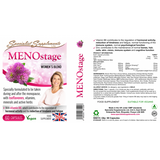 Introducing MENOstage, the all-natural herbal supplement designed to support women's health during premenstrual syndrome (PMS), hormonal imbalances, and menopause. Our carefully crafted blend of women's herbs such as red clover, wild yam, and sage leaf, along with Siberian ginseng, soya isoflavones, vitamin B6, and zinc citrate, helps balance the body and promote a sense of vitality and well-being.